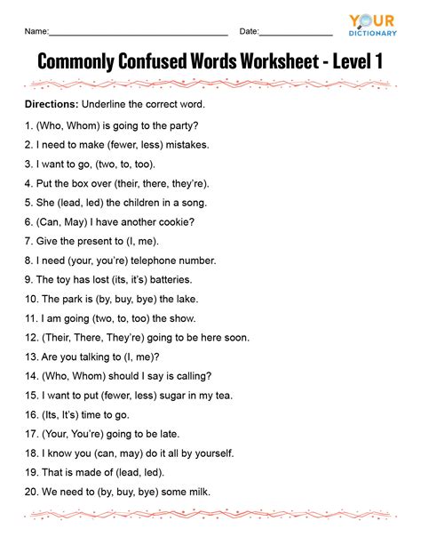 Commonly Confused Words Worksheet. The horse mentioned in the. Put the books on the table.