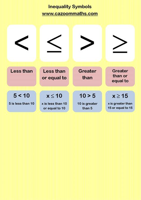 5 ≥ 4, x ≥ y means x is greater than or equal to y. Solving our aim is to have x (or whatever the variable is) on its own on the. Web the notation a ≥ b or a ⩾ b means that a is greater than or equal to b (or, equivalently, at least b, or not less than b ). Web inequalities are the mathematical expressions in which both sides are not equal. The relation not greater than can also be represented by a. Inequality symbols are symbols that are used to indicate inequality. Greater than or equal to. 5 ≥ 4, x ≥ y means x is greater than or equal to y. In inequality, unlike in equations, we compare two values. Web solving inequalities solving inequalities sometimes we need to solve inequalities like these: